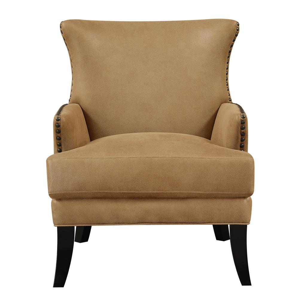 The Mcdaniel accent chair from Wallace & Bay brings a great look to your space that you'll enjoy for years to come. With a nod to the traditional wingback design, this accent chair has angles in the back and arms with curved legs for a contemporary style with vintage charm. Nailhead trim completes the look for a piece that's perfect for relaxing after a long day. The Mcdaniel accent chair combines old-world charm with style, comfort, and durability Exemplifies transitional style in a beige color palette, bringing both personality and class to your home. Built to be comfortable and durable, the Mcdaniel accent chair includes a web suspension frame and foam cushion construction The Mcdaniel accent chair features Faux Suede Upholstery and Nailhead Trim | |