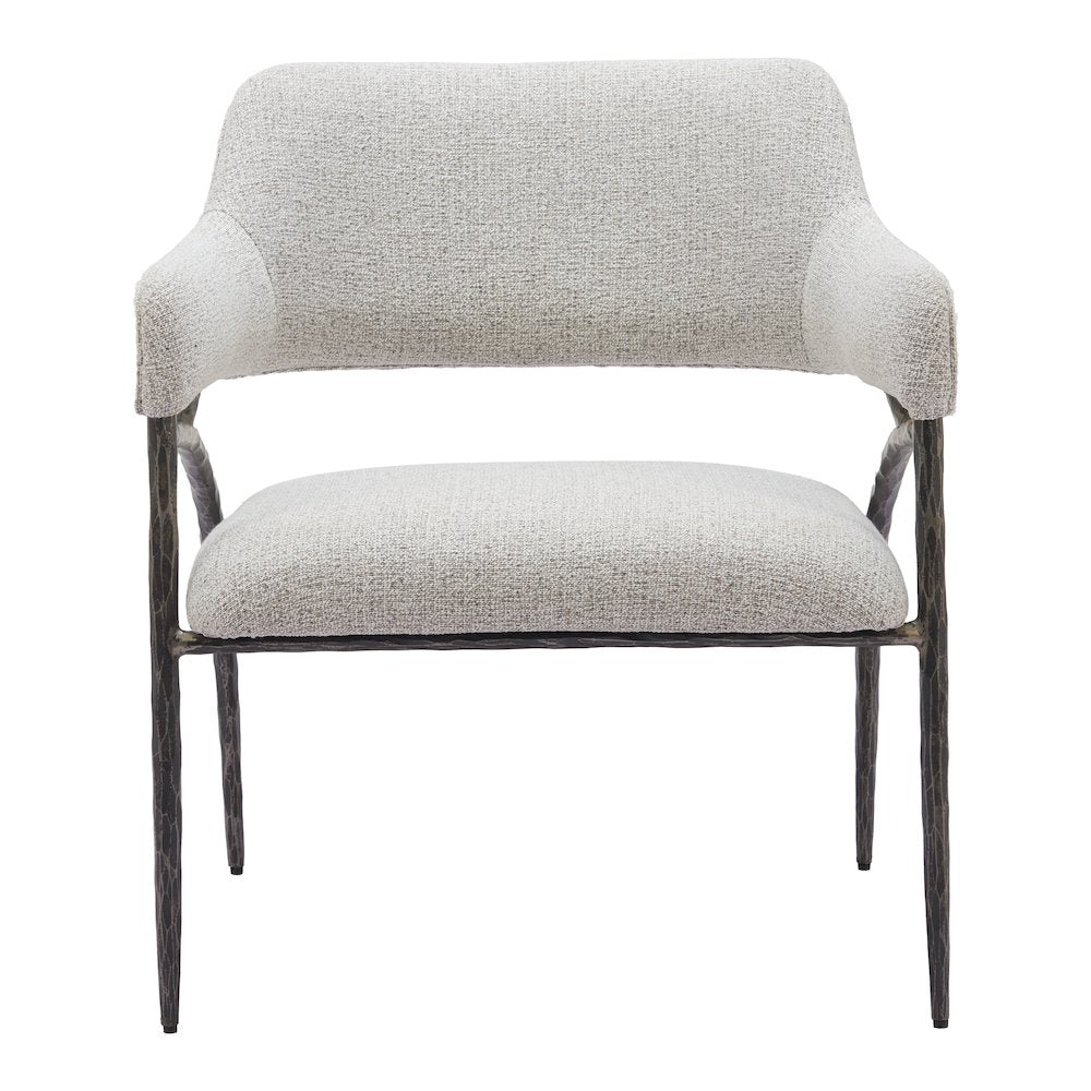 Meet the Vesterboro Accent Chair, an embodiment of luxury and resilience, suited for modern and Art Deco environments. This chair is elegantly wrapped in a bouclé-style fabric, providing a rich, textured feel that elevates its aesthetic appeal. Its robust, forged-look steel frame ensures durability, perfectly balancing the fabric's softness. Ideal for adding a touch of sophistication to a hotel lobby or a living room, the Vesterboro's adaptable design seamlessly blends with various decor styles. Its combination of elegance and simplicity makes it a distinct piece, offering both comfort and chic style. The Vesterboro Accent Chair is more than a seat; it's a symbol of refined elegance. Assembly not required Armrest support Forged steel legs Rubber feet protect floor from scratches Support up to 450 lb | |