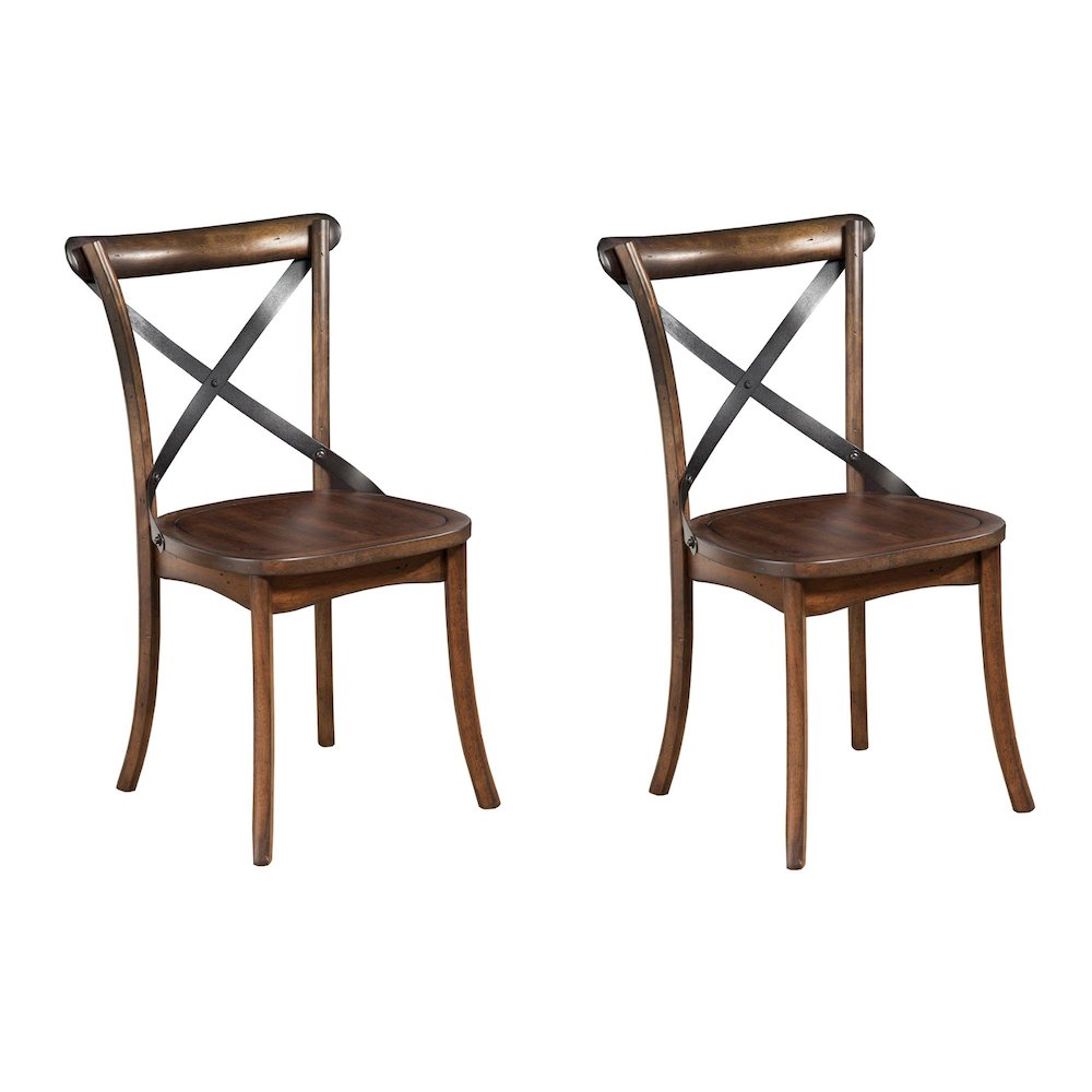 Arendal Set of 2 Side Chairs, Burnished Dark Oak The Arendal dining collection is a great integration of rustic and industrial styles. With its Dark Burnished Oak (Brown) finish and custom metal cross-back chair accents in Antique Black, this is a versatile group that keeps it casual but makes a fantastic impression. Add the correlating dining table for a complete setting. Metal Accents Chair Back | |