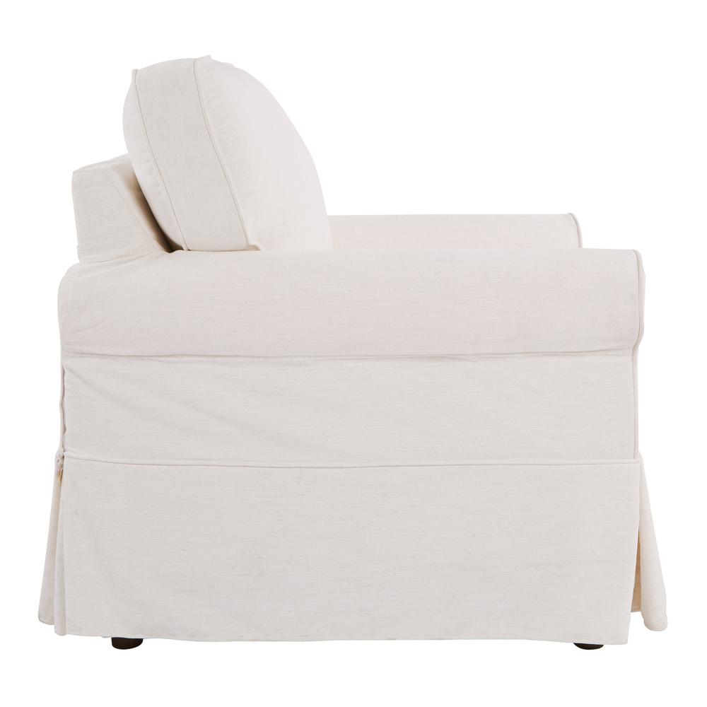 Chair with Ivory Slip Cover Create the perfect Cottage home with all its charm and relaxed ease with our Ashton Slipcover Sofa, Loveseat and Armchair Collection. Classic rolled arms, tailored piping and flirty kick pleat skirt provides the casual, livable style a well-designed home celebrates. Whether you wish to decorate a living room with the complete sofa, loveseat and Armchair collection, purchase a pair of Armchairs for a sunny reading nook, or just a single stand-out sofa for your family room, your style will shine through with a classic feel that welcomes all to sit and relax. Soft fabric slipcovers slip effortlessly on and off for easy, worry-free, washable upkeep. Our deep 26” box cushions are reversible and built of high resiliency foam, wrapped in thick poly-fiber and set on sinuous spring supports for long-lasting good looks. Solid wood legs and corner block construction complete the high-quality integrity of these thoughtfully designed furnishings. Soft and relaxed Designer style Piping detail with flirty, kick pleat skirt Rolled arm adds classic charm Reversible seat and back cushions Washable slipcover makes cleaning a breeze High resiliency foam cushions with thick poly-fiber wrap. Sinuous spring cushion support Deep 26” box cushion seat depth | |