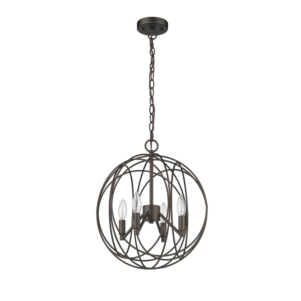 ELLA Farmhouse 4 Light Rubbed Bronze Ceiling Pendant 15.5" Wide ELLA , a Farmhouse style 4 light pendant features an oil rubbed bronze finish. The unique and beautiful style of this pendant will be sure to be the focal point in any room! (4) 60 Watt max E12 Type C Bulb (not included) Hardwired, Wall Outlet Switch Uplight Indoor Setting | |