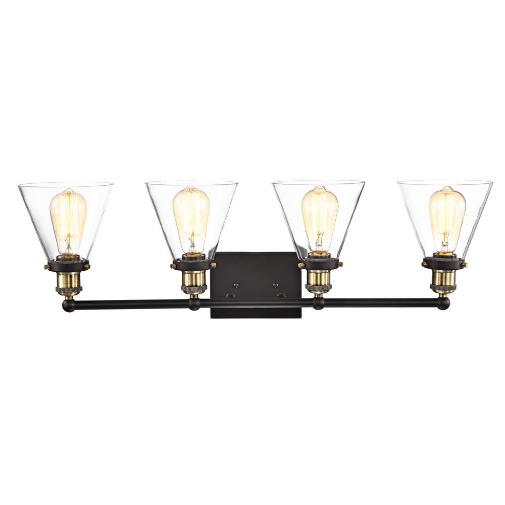 CHLOE Lighting BONNIE Contemporary 4 Light Rubbed Bronze Bath Vanity Fixture 32" Width Add a bit of sparkle and shine to your restroom this season with this gorgeous transitional style, rubbed bronze bath and vanity fixture. This fixture can be installed both upwards and downwards, and the spotlight shaped clear glass shades are open, making light bulb changes a breeze. If you're looking for a beautiful vanity fixture to complete your restroom, look no further! This fixture takes four 100W E26 bulbs, and is compatible with flourescent, incandescent, and LED bulbs. This fixture is damp listed and UL listed. (4) 100 Watt max E26 Type A Bulbs (not included) Hardwired Clear Glass Up/Downlight Indoor Setting | |