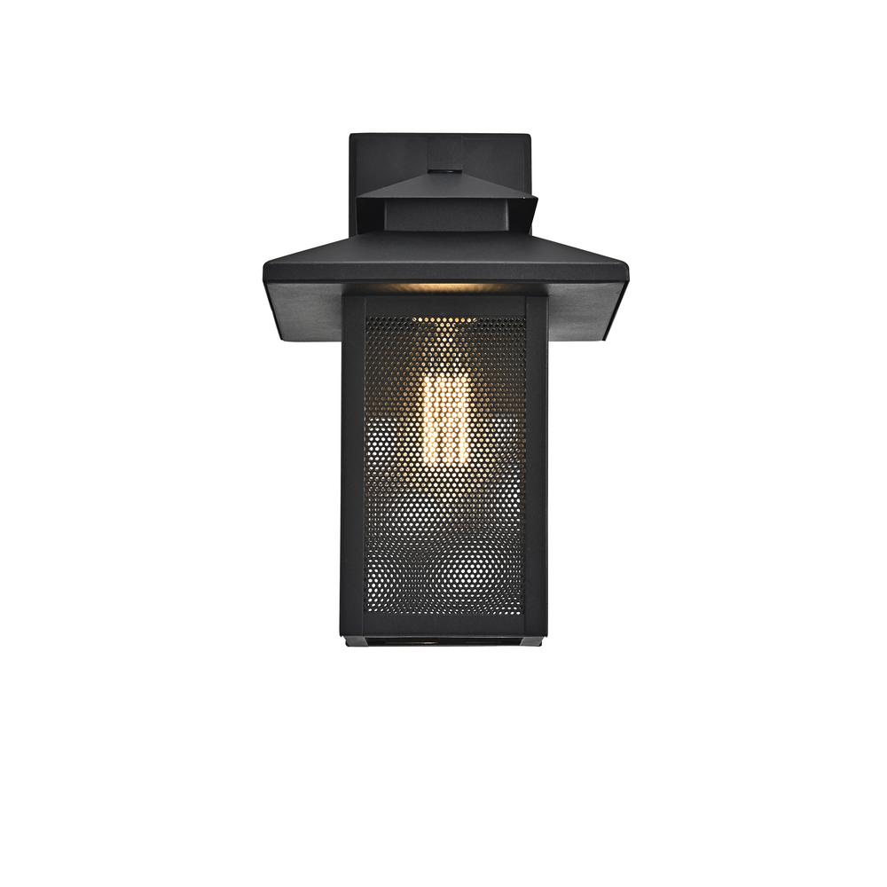 CHLOE Lighting IRONCLAD Transitional 1 Light Textured Black Outdoor Wall Sconce 13" Height This is a delightfully designed out door wall sconce. It features textured black, steel, mesh walls over a clear glass pieces. It also has an open base, making it easy for a light bulb change. This transitional style wall sconce will definetely fit in on your home sweet home. The fixture takes one 100W bulb, and a vintage bulb is included in the box. Compatible with incandescent, flourescent, and LED bulbs with an E26 base. All of our wall sconces are UL listed, and dry, damp and wet listed, to survive all weather conditions, hot and cold. (1) 100 Watt max E26 Type A Bulbs (vintage bulb included) Hardwired Clear Glass Downlight Indoor Setting | |