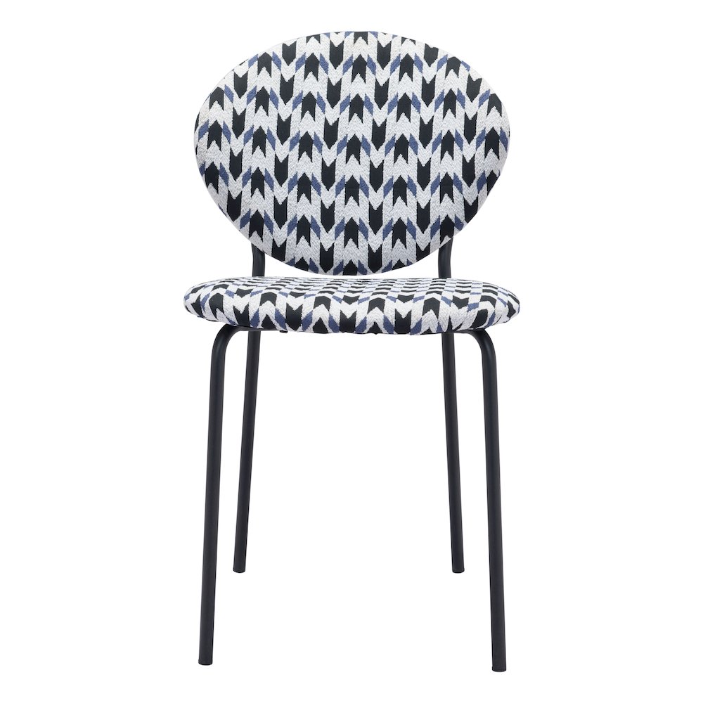 Clyde Dining Chair (Set of 2) Geometric Print & Black Mix and match with this one of a kind, textured chair. A layer to add to the other textures in your home to make it cozier and more welcoming. Believe it or not, it is easy to style adding life to any space. Assembly required Stackable for space saving storage Exquisite printed fabric Powder coated steel legs Rubber feet protect floor from scratches Support up to 350 lb | |