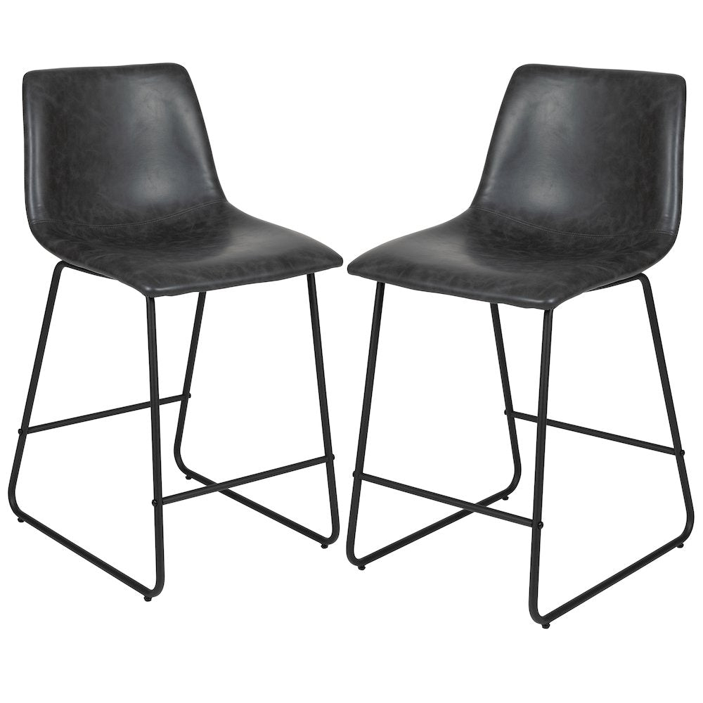 24 Inch LeatherSoft Counter Height Barstools in Dark Gray, Set of 2
