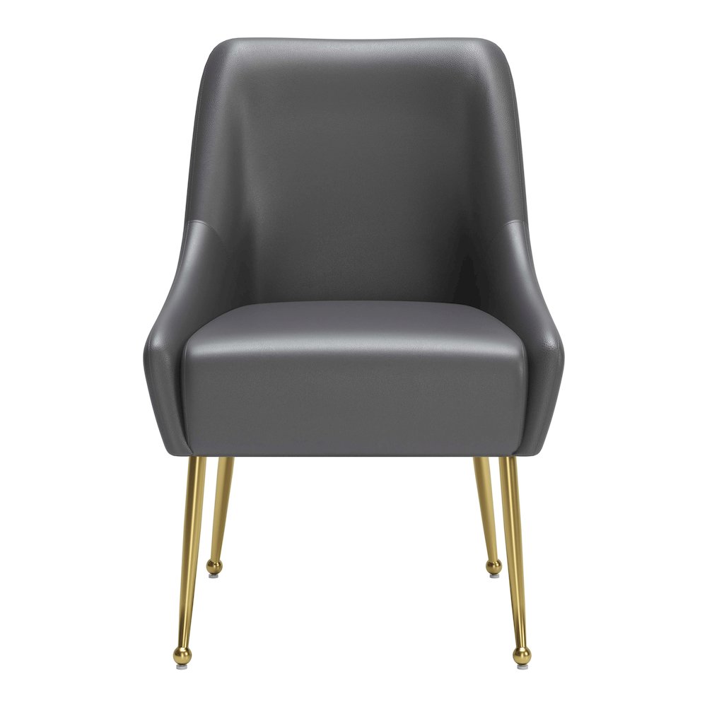 Maxine Dining Chair Gray & Gold Upholstered for you to sink into comfort while scrolling through your media feed or watching TV. A handsome armchair that makes a bold statement in any room, whether it is the living room, bedroom, or media room. Featuring stylish gold metal legs and a cushioned back and armrest that you will never want to leave. Assembly required Plush and durable faux leather fabric Powder coated steel legs Rubber feet protect floor from scratches Backrest handle for easy gripping Support up to 330 lb | |