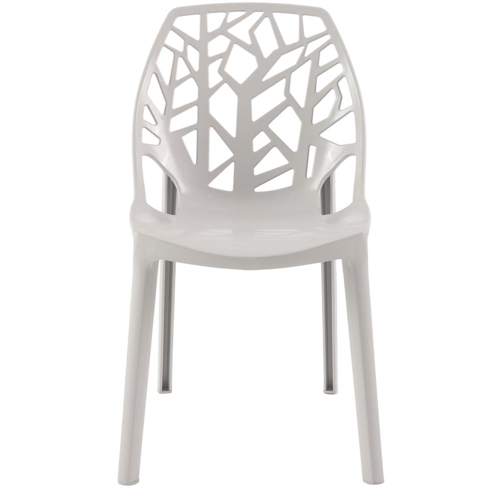 Modern Cornelia Dining Chair, Set of 4 This chair is very light yet sturdy. This Cornelia Plastic Dining Chair lends a modern touch with a woodsy feeling to your home. The intricate cut-out design conjures an image of a small grove of trees to your space. It is ideal around a minimalist dining table or simply as a standalone chair in an entryway, hallway or bedroom. However you place it in your home, the chair’s unique blend of elegant style and simplicity will ensures the finishing touch to the contemporary home. Spring cut-out tree design Molded Plastic material Black plastic non-marking feet Stackable item Suitable for indoor or outdoor use Lightweight No assembly required | |