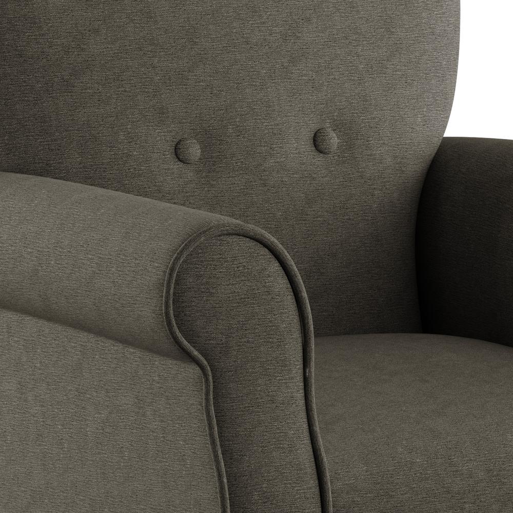 Accent Chair with Easy Clean The Kelley accent chair from Wallace & Bay is designed with a classic silhouette and features a well-tailored, curved backrest with button accents. It presents a welted base and arms, foam encased pocketed coil cushions with sinuous spring support, and a hardwood frame upholstered with a linen-like cover. The Kelley accent chair is a stunning, yet comfortably classic seating choice Exemplifies traditional style in a brown color palette, bringing both personality and class to your home. The Kelley accent chair features easy clean | |