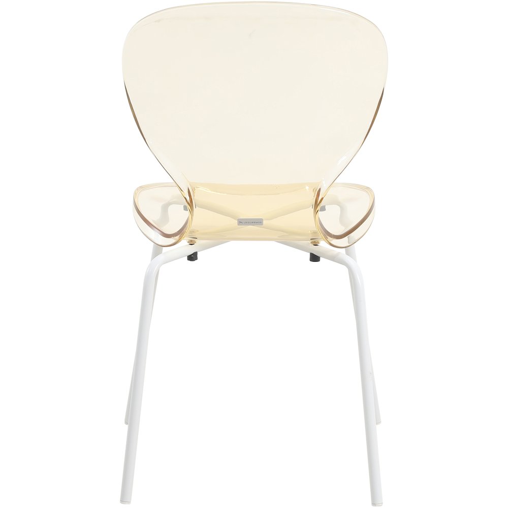 Modern Oyster Transparent Side Chair in White Base Enhance your dining area with our Oyster Dining Chair, meticulously designed to offer both style and comfort. This versatile chair features a sleek, transparent molded plastic seat and backrest that seamlessly complement any interior decor. The ergonomic curved backrest and waterfall edge seat ensure lasting comfort and proper posture support, making it perfect for extended use in dining rooms, kitchens, or offices. The chair’s stability is reinforced by a sturdy X-shaped frame and stainless steel legs with a powder-coated finish, supporting up to 330 lbs. This lightweight, stackable chair is not only easy to move and store but also UV resistant, ensuring long-lasting durability even in sunlit spaces. Assembly is required, but the straightforward process makes it a hassle-free addition to your home or office. The dining chair features a curved backrest that supports the spine’s natural curve and a rounded seat edge with a smooth, sloping front that reduces pressure on the thighs The kitchen chair has an X-shaped frame underneath the seat that provides secure and stable support by evenly distributing weight The seat and backrest are made from high-quality transparent molded polycarbonate This dining chair weighs 10.2 pounds, making it lightweight and easy to move. Its stackable design allows you to save space by stacking multiple chairs when not in use, ideal for both small and large spaces. The chair is UV-resistant, which protects it from fading and discoloration caused by prolonged exposure to sunlight. This feature ensures the accent chair maintains its color and appearance over time. The dining room chair has plastic glides on the bottom of each leg, which protect your floors from scratches and scuffs. These glides help the chair move smoothly and quietly on different surfaces, keeping your flooring in good condition. Assembly is straightforward with all necessary tools and instructions included | |