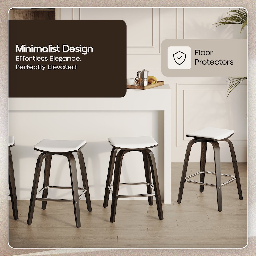 Modern Style Dark Walnut color in White Elevate your seating experience with the LeisureMod Pelya Square Counter Stool, perfect for modern homes, kitchens, bars, and cafes. This minimalist counter stool features a plush square leather seat with subtle elevation and high-density foam padding, providing both style and comfort for daily use. Crafted from durable poplar wood, the frame boasts outward-flared legs with a rich, stained finish for a touch of natural elegance. Enjoy flexibility and adaptability in any setting with the 360-degree swivel mechanism, while the chrome-finish footrest adds both stability and a sleek contrast against the wood tones. Floor-protective glides ensure smooth movement on various surfaces, making this stool ideal for any environment. LeisureMod’s easy assembly design brings convenience and sophistication to your space with the Pelya Collection’s stylish and durable seating solution. This counter stool combines a minimalist aesthetic with a plush, square seat upholstered in leather This stool features smooth leather upholstery and foam padding with a density of 1.5 lbs The outward-flared legs, crafted from durable poplar wood, feature a rich stained finish that adds natural elegance A powder-coated iron swivel plate enables seamless 360-degree rotation, allowing the stool to move effortlessly in any direction A square iron footrest with a chrome finish connects the legs at the base, providing a stable and comfortable platform for resting feet Plastic glides on each leg protect floors from scratches, making the stool suitable for a variety of surfaces, including hardwood, tile, and laminate This counter stool requires minimal assembly, with a straightforward setup process that allows for quick installation. All essential components fit together easily, providing immediate access to the stool’s design and functionality. | |