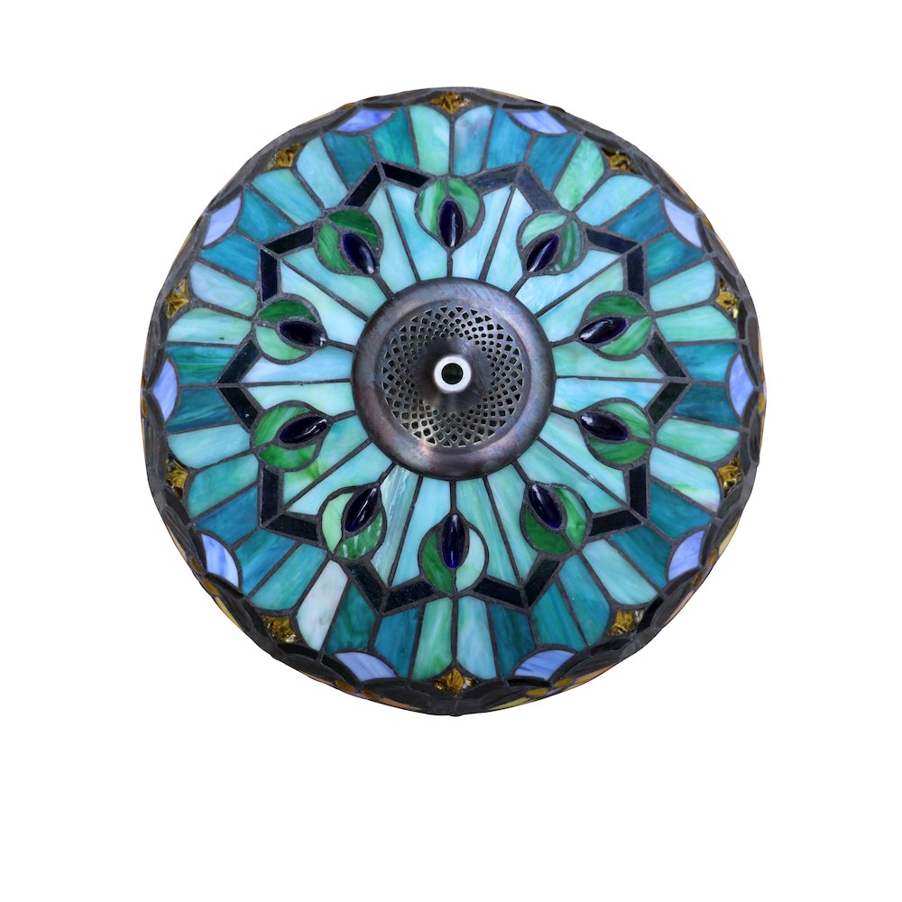 | Kendall Tiffany-Style 3-Light Victorian Double Lit Table Lamp 16" Shade Kendall is a beautifully designed floral-style, stained glass double-lit table lamp. This lamp is made up of 517 pieces of hand-cut stained art glass and 56 glass beads, expertly pieced and soldered together to create each shade. Each shade is formed using the very same technique developed by Louis Comfort Tiffany in the early 1900s, using hand-cut stained art glass, each wrapped in fine copper foil and soldered together at extremely high temperatures to form each unique shade. The exact size to the nearest inch may vary, and the exact color of each glass piece may vary due to each piece being handcrafted. The first image is with the light shining through, the second image is with no light. Dry-listed and recommended for an indoor setting. (2) 60 Watt max E26 Type A + (1) 15w E12 Type C Bulbs (not included) Pull Chain Switch, On-Cord Rotary Switch 517pcs glass cut, 56 glass beads Downlight | |