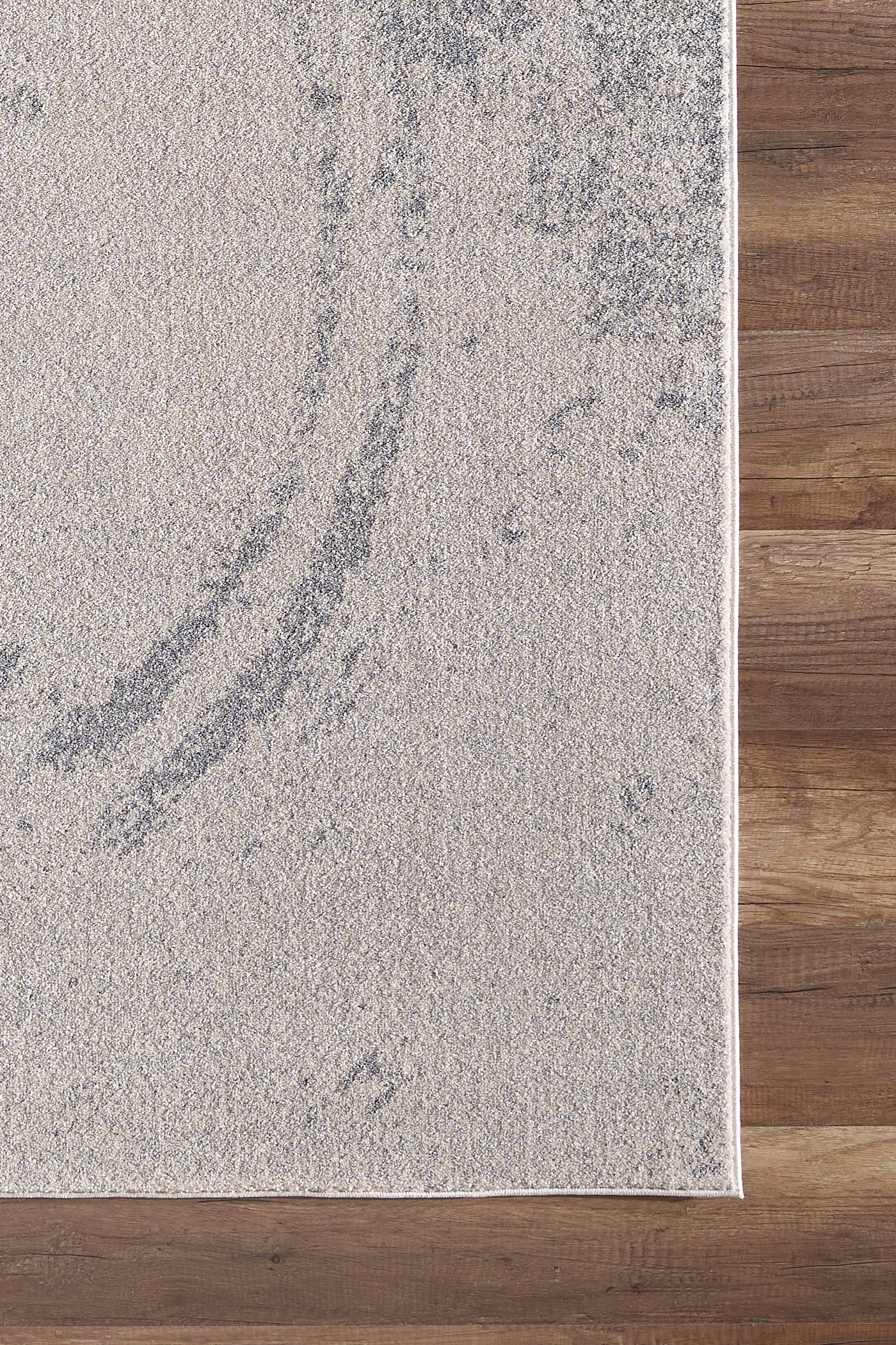 This area rug is a classic design with an unexpected twist. This Quartz beige circle swirl solid area rug is a light grey beige rug with a sweeping swirl of darker grey distressed over the solid color. The distressed swirl adds a touch of interest to the design without overpowering the classic style. Inspired by the windswept sands of Southwestern canyons, this design is a testament to effortless beauty. Formed with densily packed polypropylene yarn, this soft area rug is durable, easy to care for, and resistant to shedding. Bring this nature-inspired piece into your home to see how easily it complements your existing interior design.