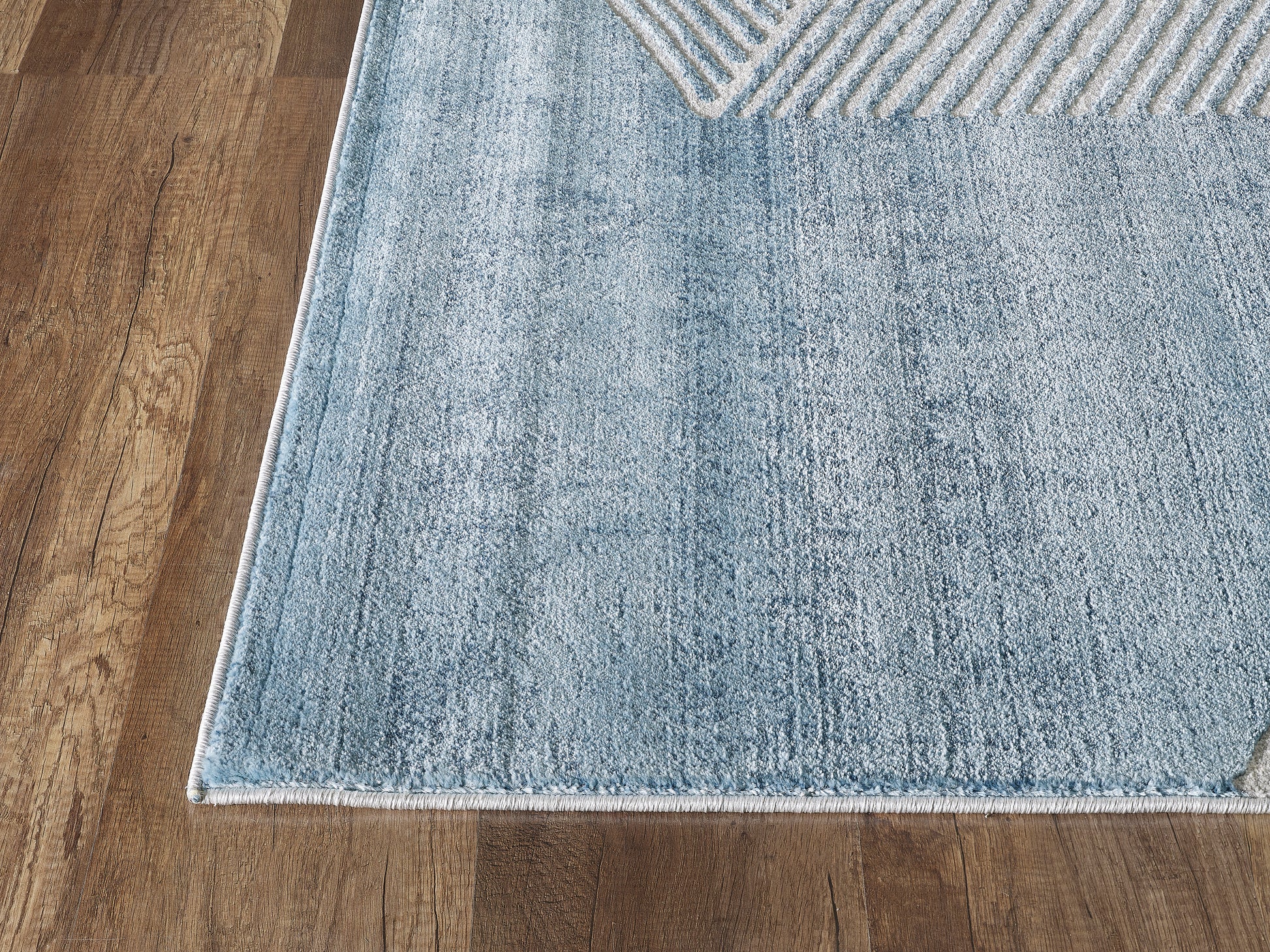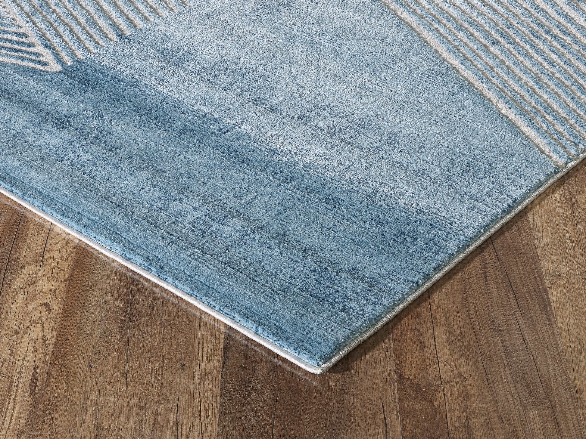 The Vista contemporary geometric area rug features criss-crossing parallel lines across the entire length of the warm blue backdrop. The neutral ivory color of the parallel lines is reminiscent of a warm day at the beach, bringing this relaxation and charm with it. Like the famous art-deco art style of decades past, this is the perfect addition to any fashion-forward home. The elegant geometric design is perfect for any modern space, whether you use this area rug in your living room, bedroom, or office. The easy-care polypropylene material is ideal even for high-traffic areas of your home, lending a casual elegance.